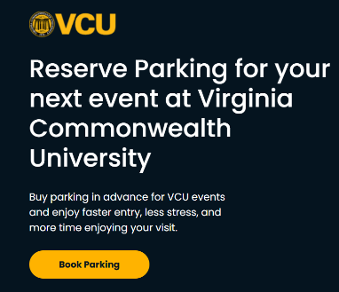 If you are attending an event on or near VCU's Monroe Park campus, simply visit https://www.justpark.com/us/event-parking/virginia-commonwealth-university/, select your event from the list, follow the prompts to purchase, and print your parking permit. Bring that permit to the appropriate parking location, and we'll have a spot ready and waiting for you!